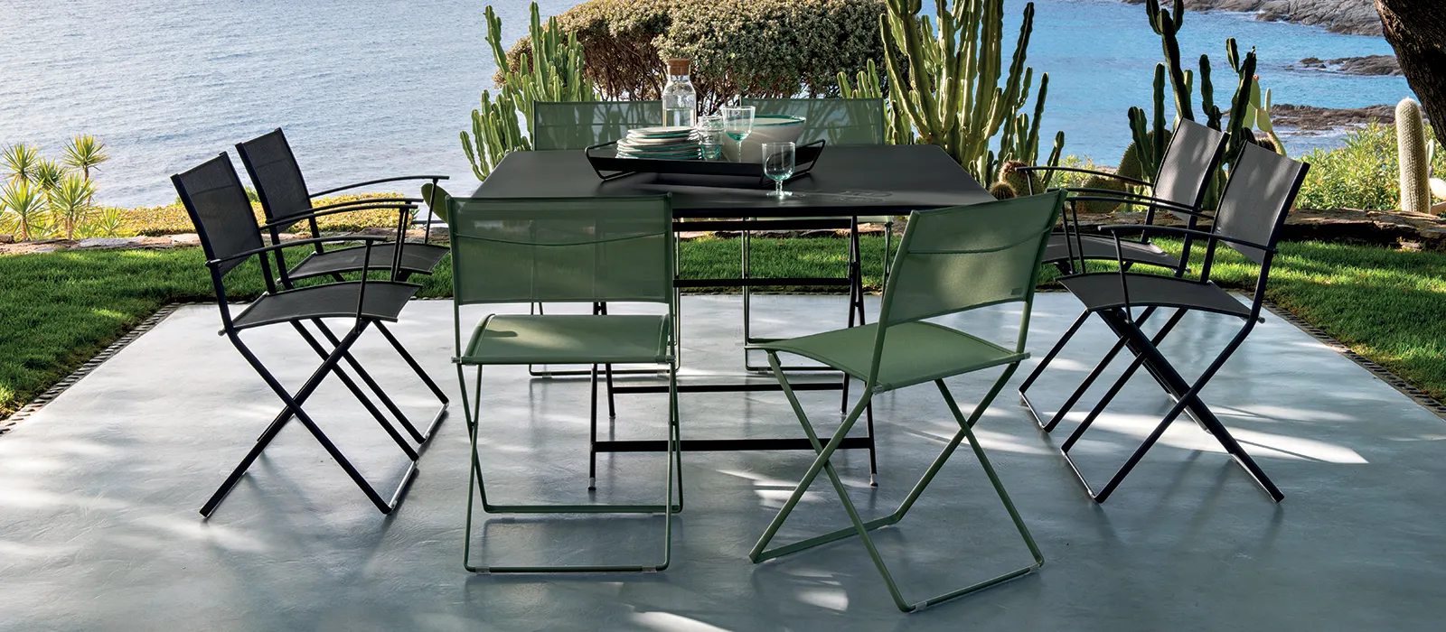 These restaurant folding chairs are imagined by Pascal Mourgue, a designer who has worked several times with Fermob. He gave them a classic style while making them extremely functional. As such, these armchairs and café chairs are easy to move thanks to their lightweight frame made from steel and aluminium, combined with outdoor technical fabric (OTF). They are ideal for both urban hotel-restaurant terraces and gardens.
