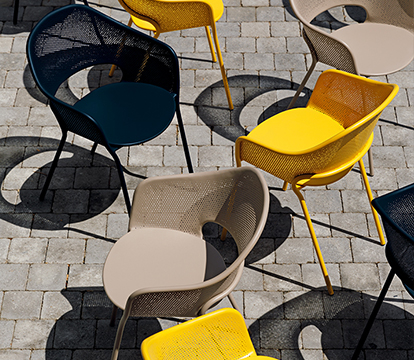 This contemporary collection, designed by Patrick Jouin, is adapted to intense use, meaning that it is perfectly suited for spaces that are open to the general public, such as parks or squares. It is also the perfect terrace furniture for professionals. With its stylish feel, the Kate armchair gives your outdoor space a lot of character. This designer item of furniture is made from steel and offers exceptional comfort thanks to its shell backrest.