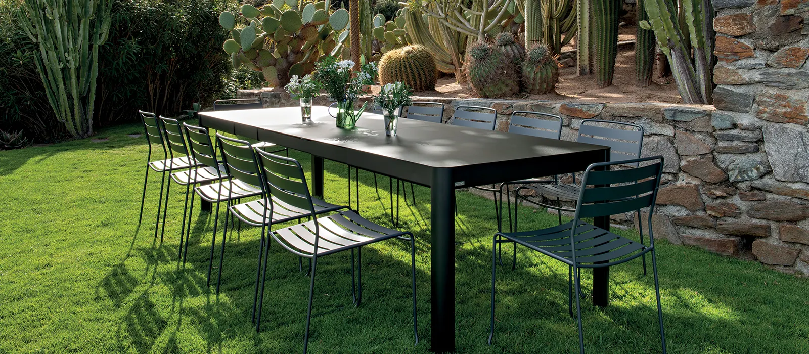 With a contemporary look, the table with extensions from the Ribambelle collection are made from aluminium, lightweight and resistant to all weather conditions. As such, they are ideal for seaside terraces, and for hotel-restaurant terraces in general. Their modularity is one of their greatest assets, easily adapting to the number of customers you have. Easily transform a 6-person restaurant table into one that can seat 10 or 12 guests by adding 1, 2 or 3 extension leaves.
