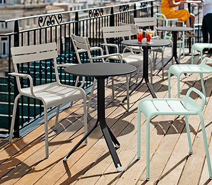 The Rest'O collection’s design, by Tristan Lohner, is reflected in the legs of these tables for restaurant terraces, their tripod base giving them a truly unique feel. The aluminium used to build them makes them both extremely light and sturdy. Specially designed for professional use, these folding restaurant tables are also perfect for balconies thanks to their different sizes!