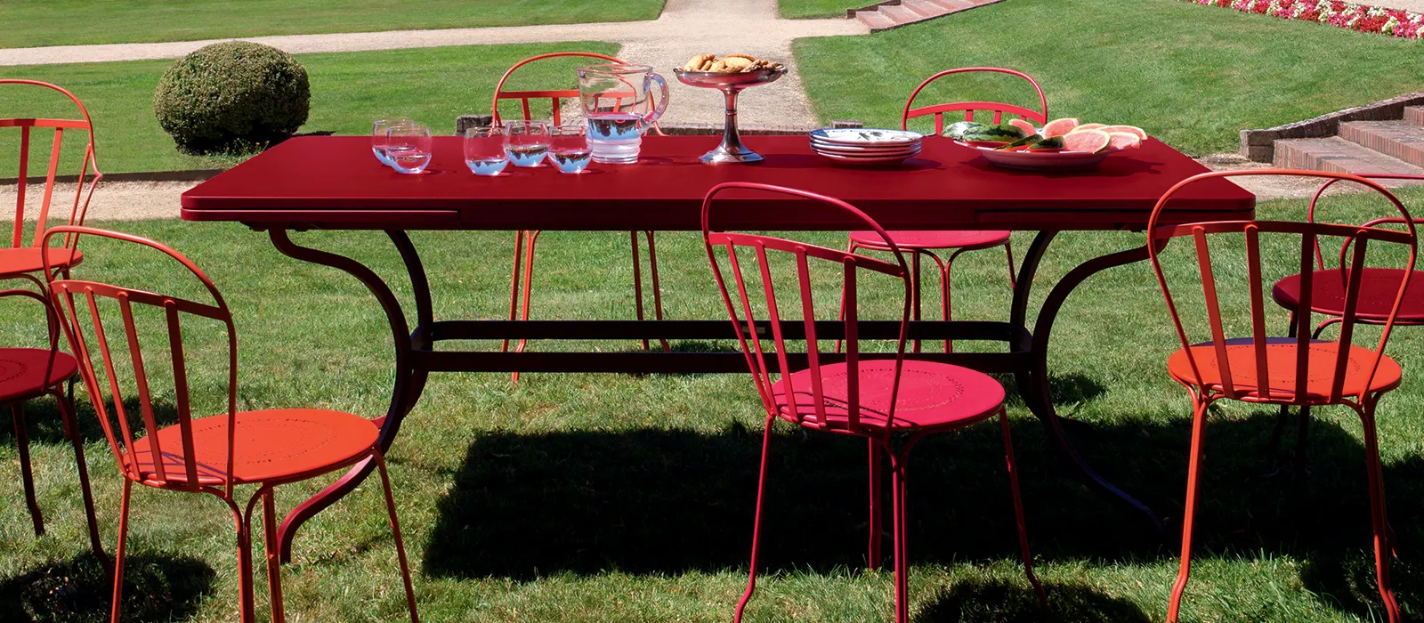 The Romane collection is named after the Romanesque architectural style, with lines that are both strong and simple. The professional terrace tables from this range have the following features in common: thick table top, simple design, and curved legs for a stylish touch.