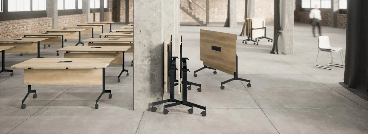 The Eureka fliptop tables are the ideal solution for dynamic companies looking for versatile furniture. Designed to be handled by a single person, Eureka tables are ideal to quickly and easily set up a meeting room or temporary office. Quick and easy installation.
