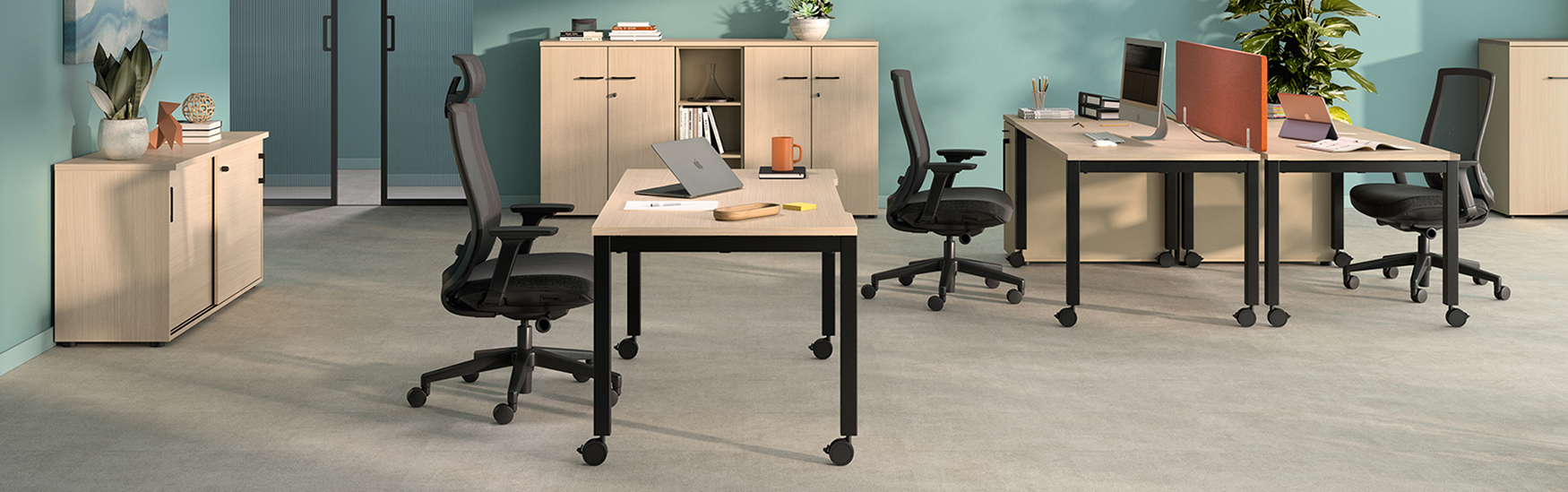 Combining functionality, flexibility and modern design, Mobile Astrolite desks create a dynamic environment, adapted to your needs. Thanks to Astrolite Mobile 's leg with castors , you can easily reorganise your space to encourage collaboration, discussion or individual work.